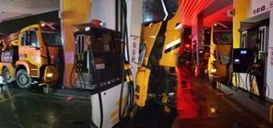 Akaryakıt istasyonunda korku dolu anlar! Vinç pompaya çarptı