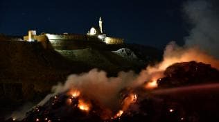 İshak Paşa Sarayı yakınında uçurulan dilek balonu nedeniyle 5 bin balya ot yandı