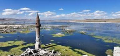 16 yıl sonra su tamamen çekildi! Köy ve mezarlık gün yüzüne çıktı