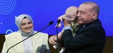 Cumhurbaşkanı Erdoğan'ın kürsüsünde minik misafir!