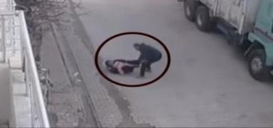 Sokak ortasında dehşet anları! Kucağında bebeği olan kadını acımasızca darp etti