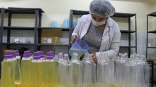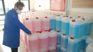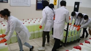 Milli Eğitim Bakanlığı'nın ödeneği ile kurulan atölyede lise öğrencileri günde bir ton dezenfektan üretiyor