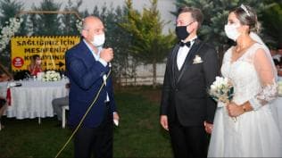 Bu düğün salonun girişinde misafirleri Bakan Koca karşılıyor!