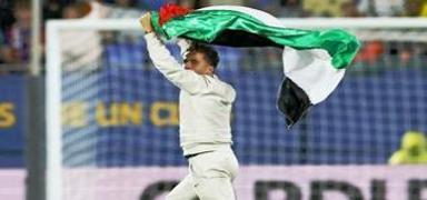 Filistin bayrağıyla sahaya girdi
