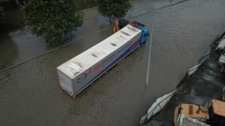 Basın Ekspres'te göz göre göre suya girip mahsur kaldı