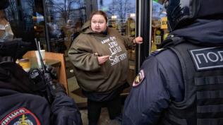 Rus ünlü ressamın oğlu Luka Zatravkin kendisini Mc Donald's'ın kapılarına kelepçeledi
