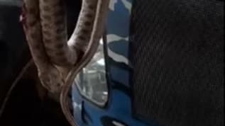 Otomobilin motoruna giren yılan paniğe neden oldu