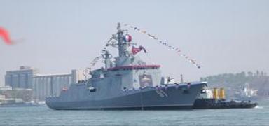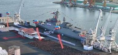 Yeni savaş gemisi suya indirilirken beklenmedik olay