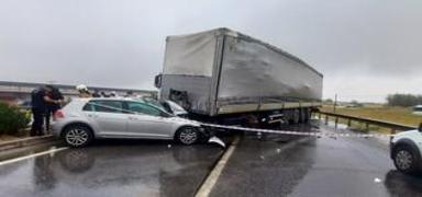 Manisa'da dehşet anı! Tıra çarpan otomobilde feci şekilde can verdiler