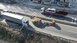 Devrilen marul yüklü kamyonet yolda uzun araç kuyruğu oluşturdu