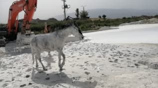 Mermer çamuruna düşen 3 at itfaiye ekibinin çabasıyla kurtarıldı