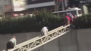 Hayrete düşüren görüntü! Kabloların bulunduğu köprüden emekleyerek geçiyorlar