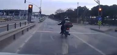 Motosikletli trafikte dehşeti yaşattı: Kırmızı ışık dinlemedi, aynasını kırdı