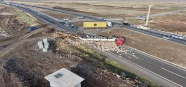 Diyarbakır-Şanlıurfa tır devrildi: Ulaşım kontrollü sağlanıyor