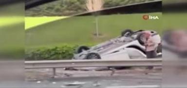 E5'te korkutan kaza! Araç takla attı, trafik durma noktasına geldi