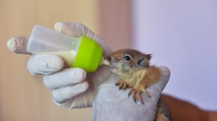Annesiz sincap yavrularına bebek gibi bakıyorlar