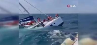 Milas açıklarında tehlikeli anlar! 12 kişinin olduğu yelkenli su aldı