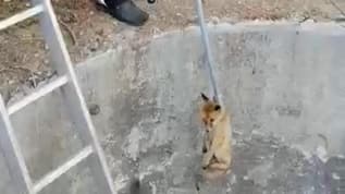 Su kanalına düşen tilkinin imdadına itfaiye yetişti