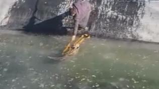 Buz dolu gölete düşen tilki kalp masajıyla hayata döndü