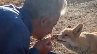 Tilkiyi elleriyle besliyor