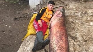 Amasya'da 2,1 metre boyunda 70 kilogram ağırlığında yayın balığı avlandı