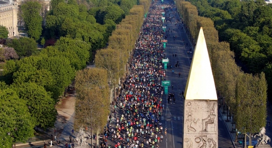 Dünyanın en ünlü caddelerinden biri olan Les Champs Elysées'de başlayan maratona 40.000'den fazla koşucu katılıyor...