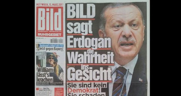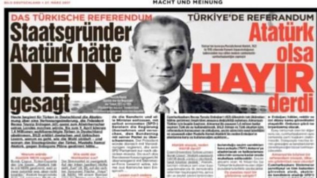 Hayır propagandasında en büyük rol Almanlarda oldu. Devlet televizyonu dışında Bild gazetesi iki kez manşet yaptı. Biri 15 Mart'ta Cumhurbaşkanı Erdoğan'a yönelikti diğeri de 27 Mart'ta Atatürk'ün de alet edildiği Türkçe atılan 'Atatürk olsa hayır derdi' manşeti oldu.