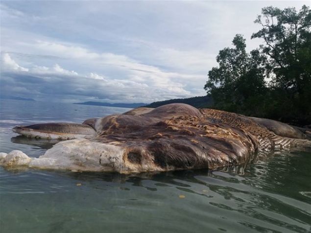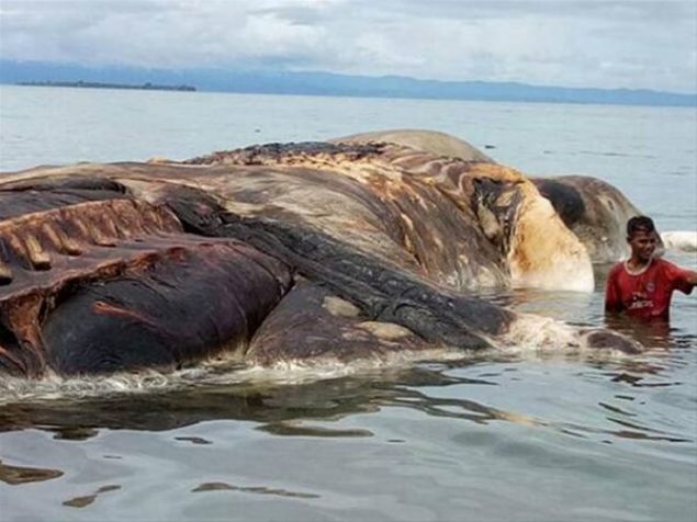 Endonezya, Seram Adası'ndaki Maluku bölgesinde kıyıya vuran 15 metrelik deniz canlısını konuşuyor.