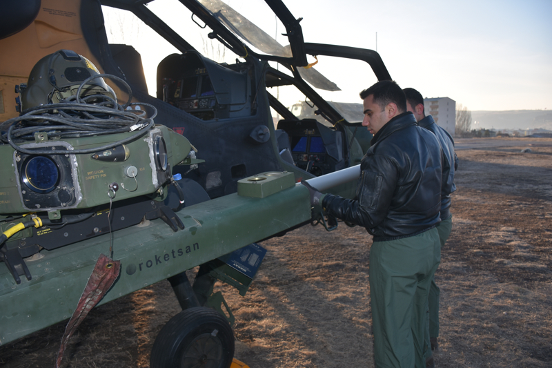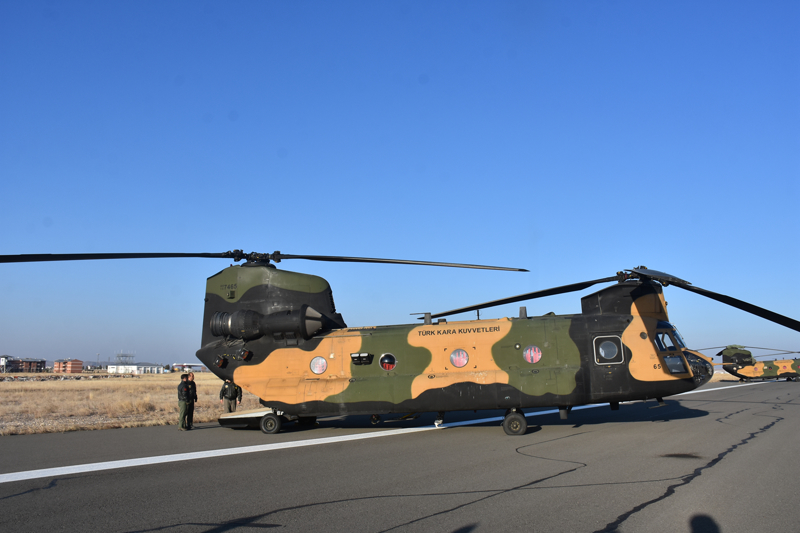 Tatbikata katılan helikopterlerin bakımını da yapan askeri personel, her koşulda hazır halde bekliyor.