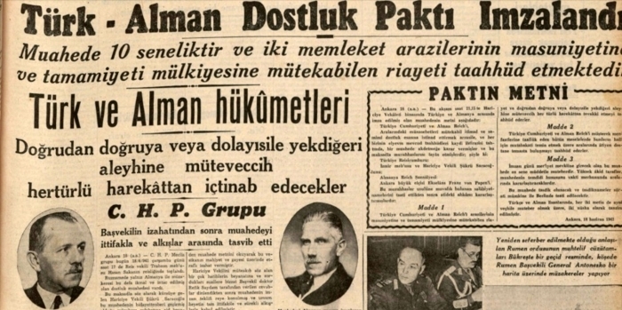 18 Haziran 1941’de Türkiye ile Almanya arasında imzalanan saldırmazlık paktı...