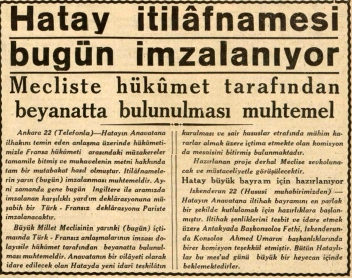 Gazete arşivlerinde 23 Haziran 1939’da Hatay’ın Türkiye sınırlarına katılması...