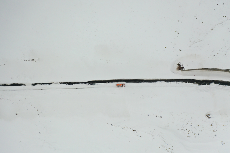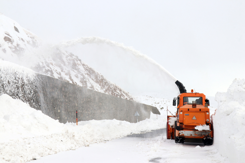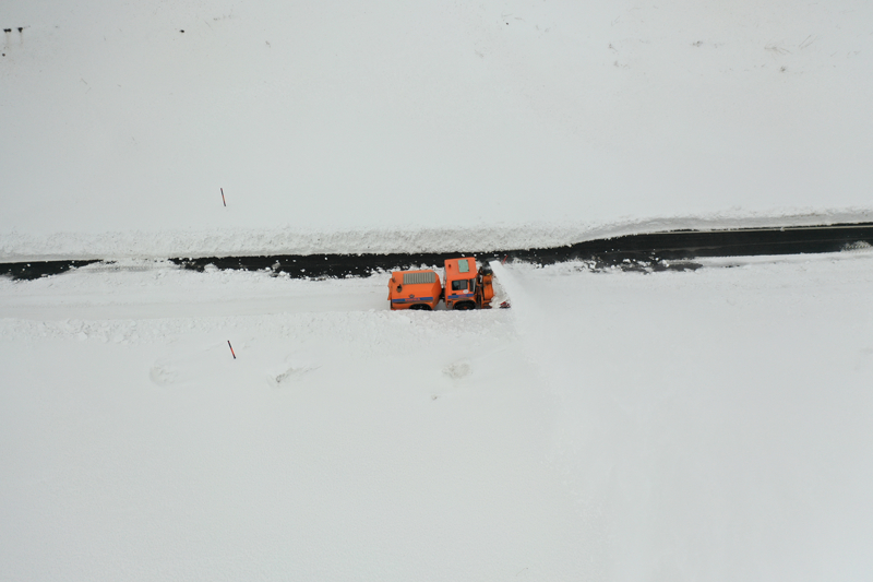 Rotatif operatörü Muhammet Sena Aslan, AA muhabirine, çalışma yaptıkları yolun yüksek dağların bulunduğu bölgeden geçtiğini, kar ve tipinin bölgede daha fazla olduğunu söyledi.
