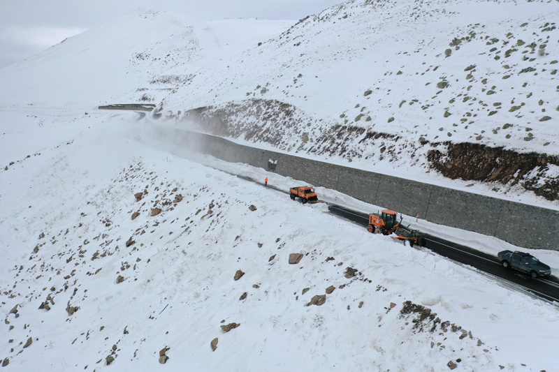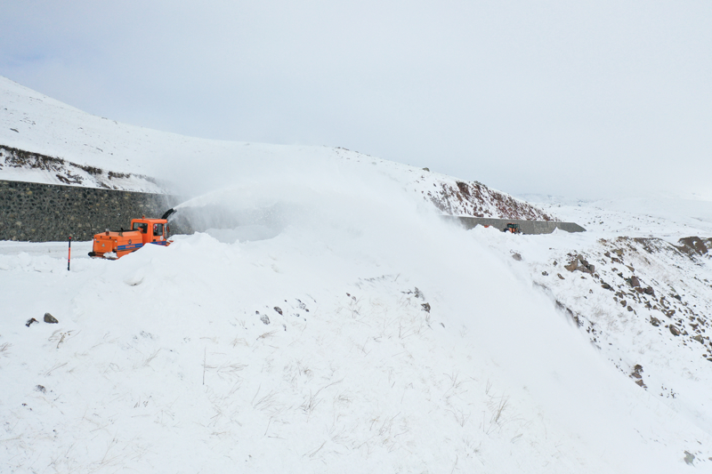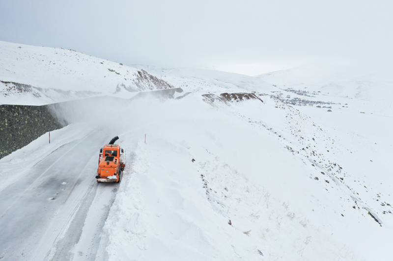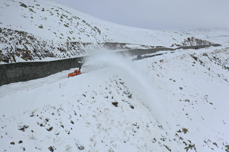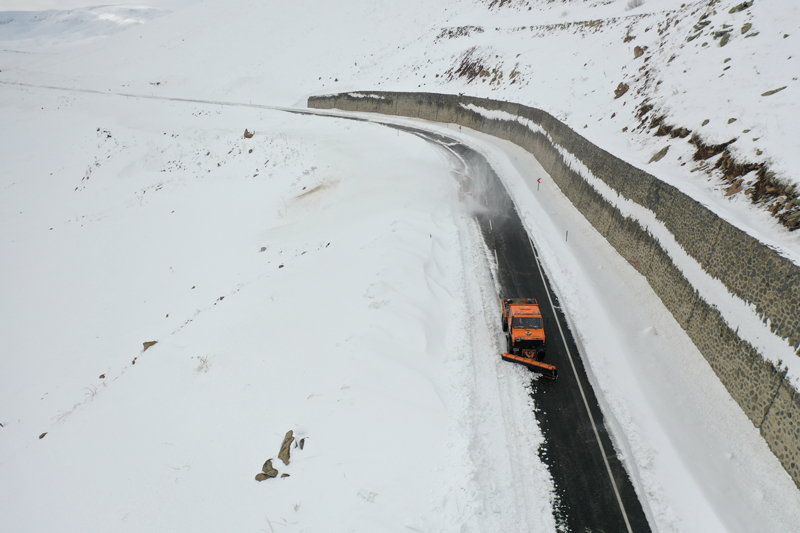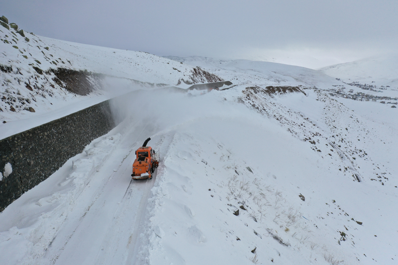 Ekipler, kentin en zorlu yollarından Ağrı ile Kars'ın Kağızman ilçesini birbirine bağlayan 2 bin 270 metre yüksekteki Yukarıkent Geçidi başta olmak üzere kar kalınlığının yer yer 2 metre olduğu yolları açık tutmak için çaba harcıyor.
