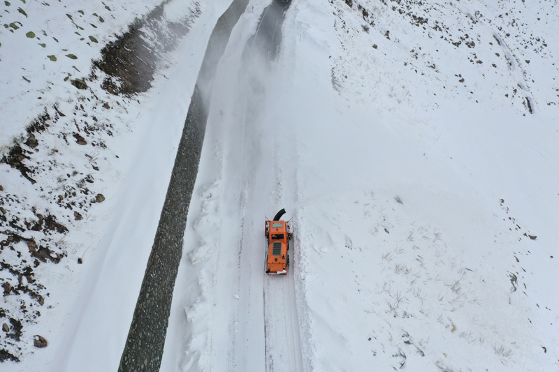 Kışın zorlu geçtiği kentte sorumluluk alanındaki kara yollarında mesai yapan Karayolları 123. Şube Şefliği ekipleri, ulaşımda aksama yaşanmaması için yoğun çalışıyor.