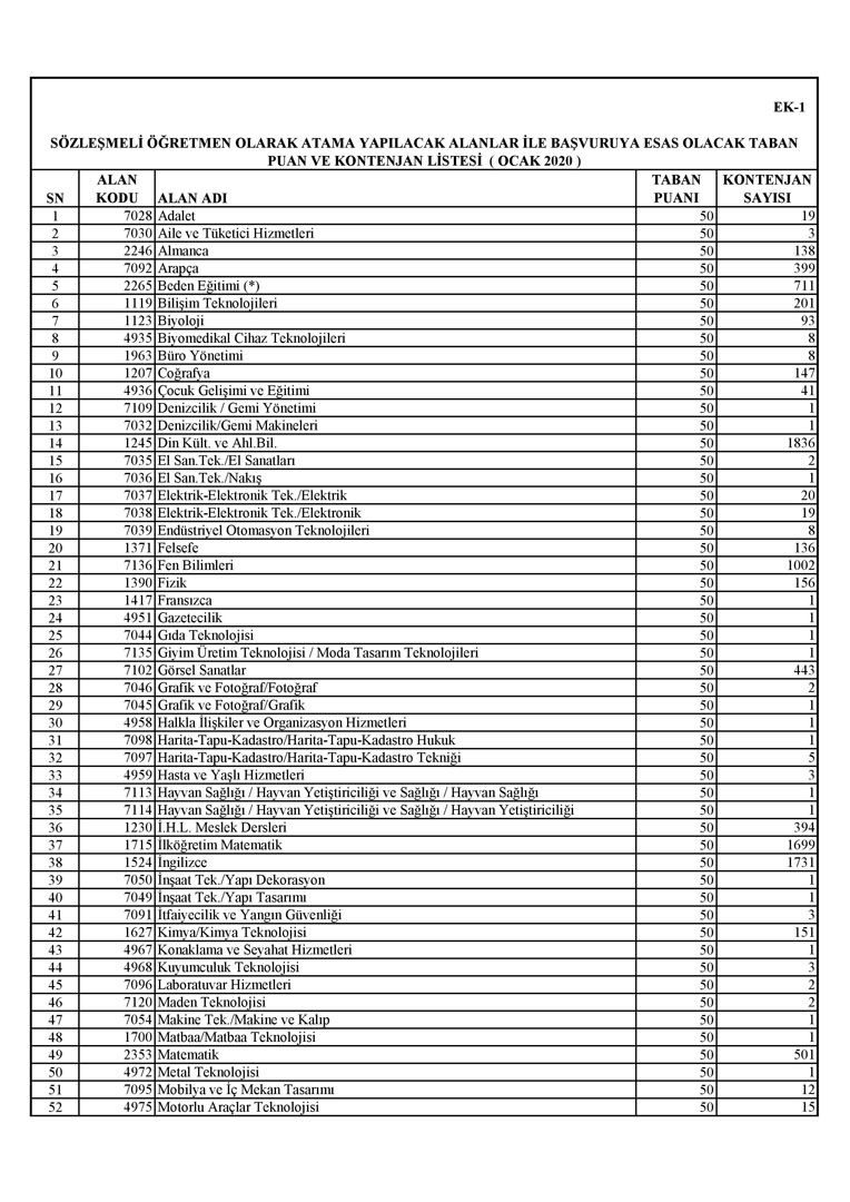20 bin sözleşmeli öğretmen atama kontenjanları belli oldu! İşte taban puanları