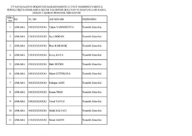 2018 taşeron işçi kadro başvuru sonuçları isim listeleri yayında