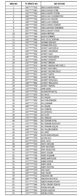 Sosyal Güvenlik Kurumu'nda 929 taşeron işçinin başvurusu kabul edildi. 141 başvuru reddedildi. SOSYAL GÜVENLİK KURUMU (KABUL EDİLENLER)