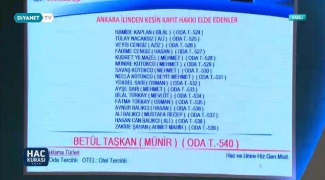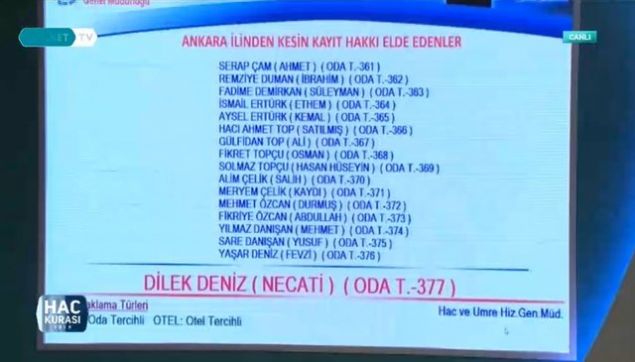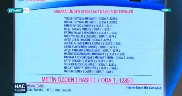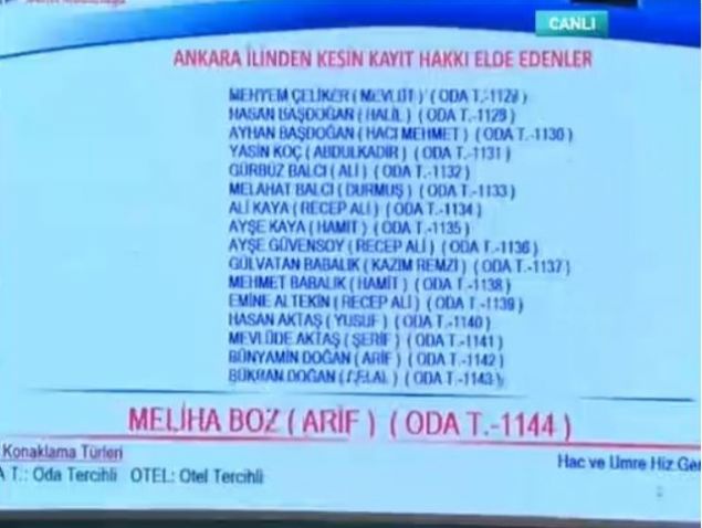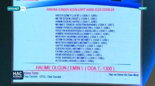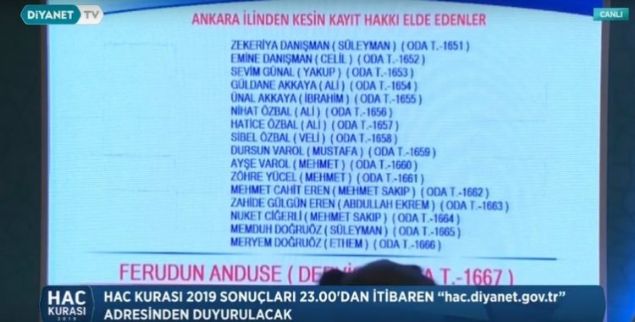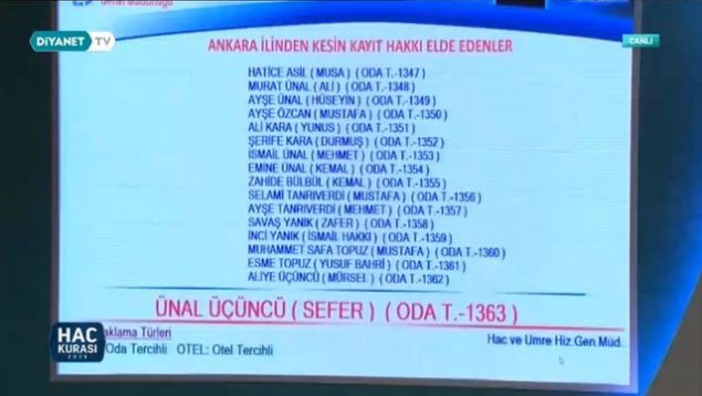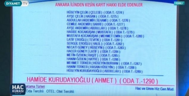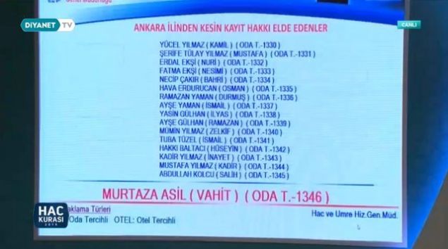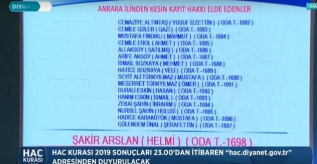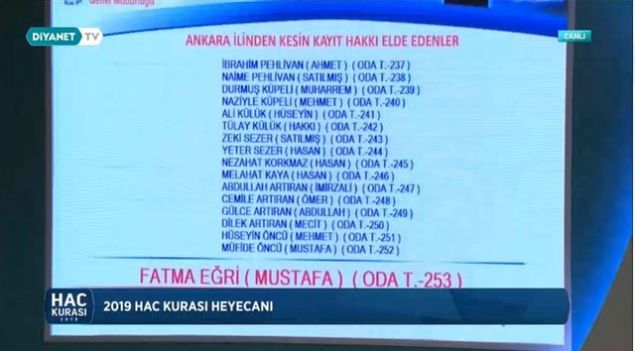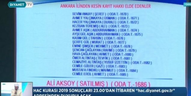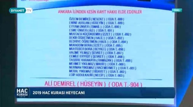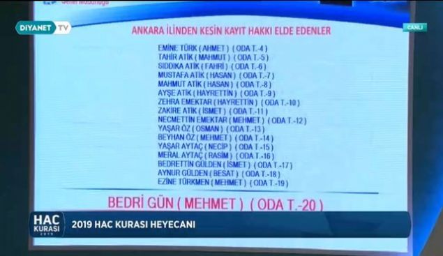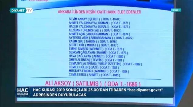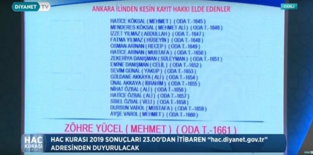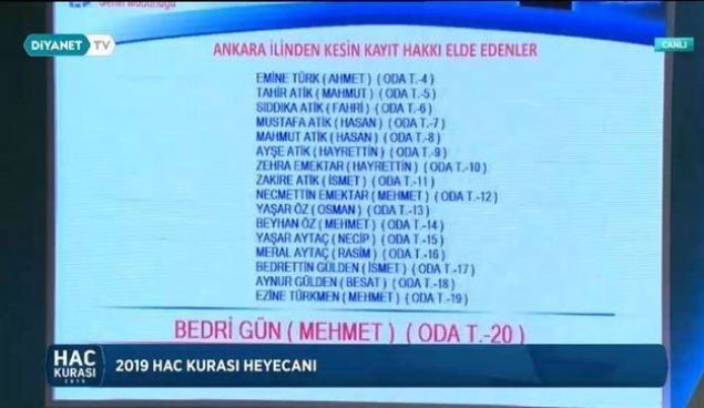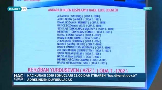 2019 Ankara hac kura çekiliş sonuçları sıralı yedek tam liste isim isim