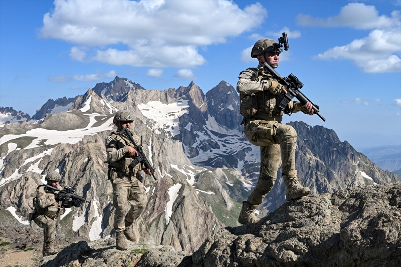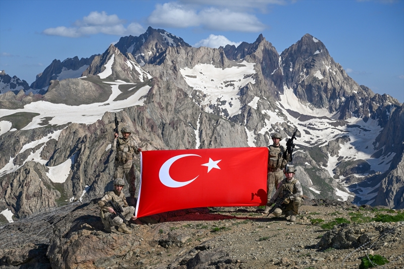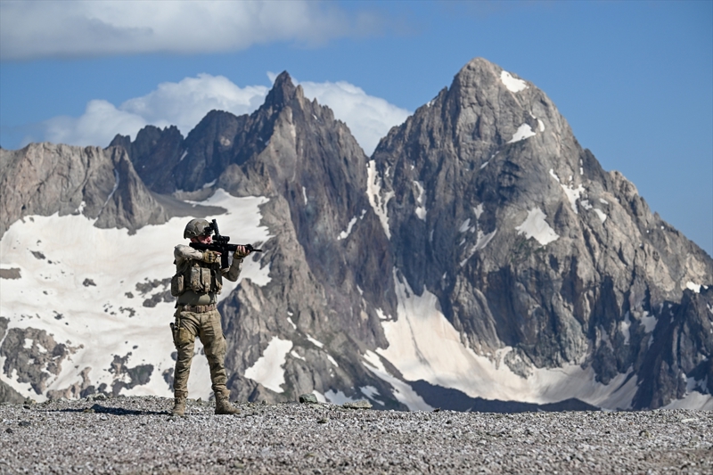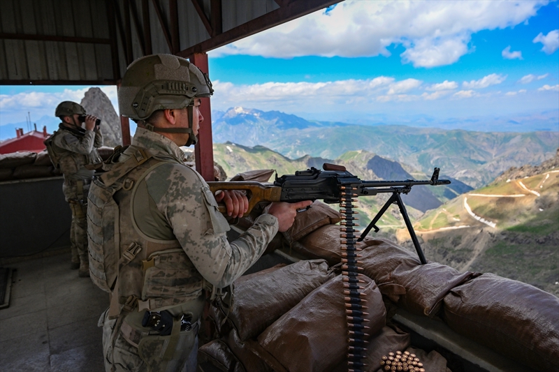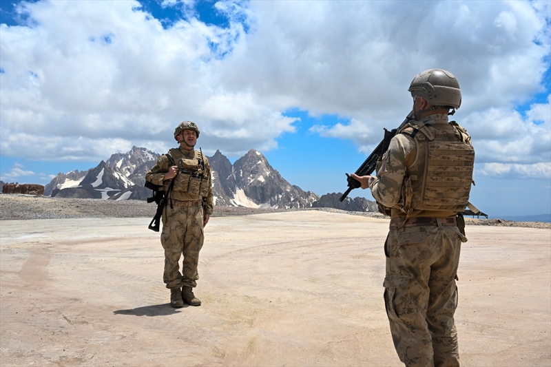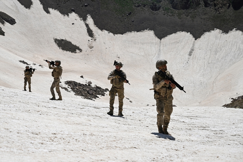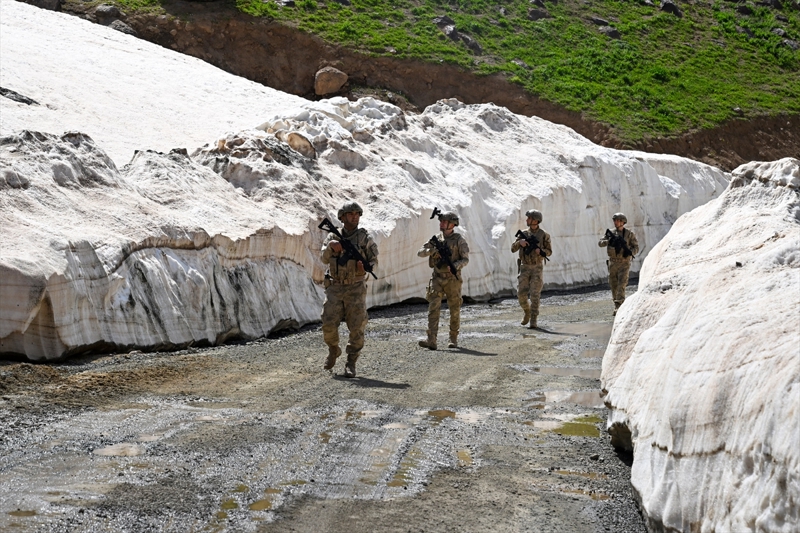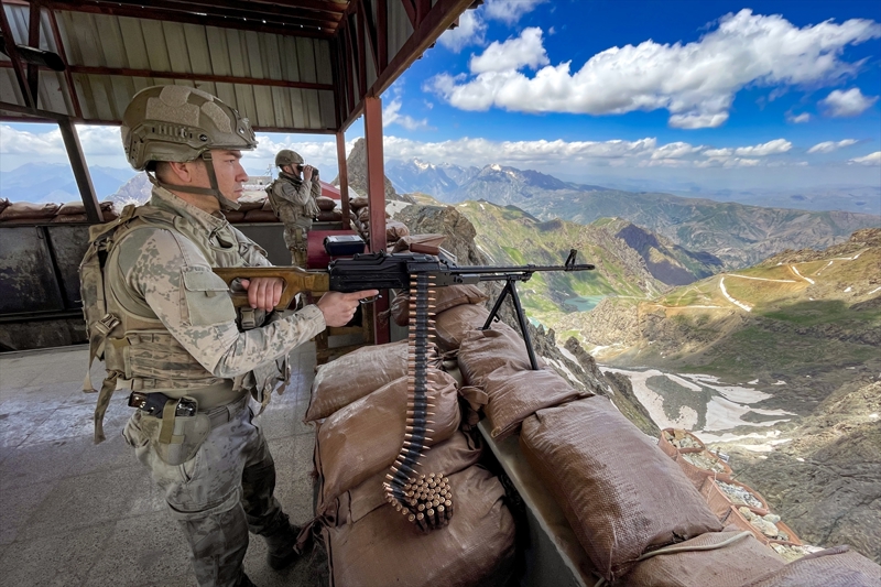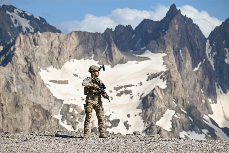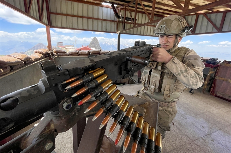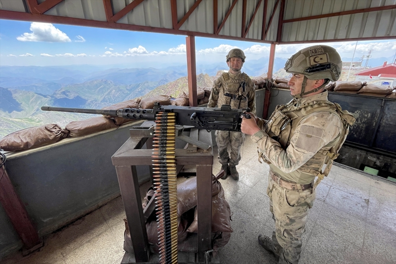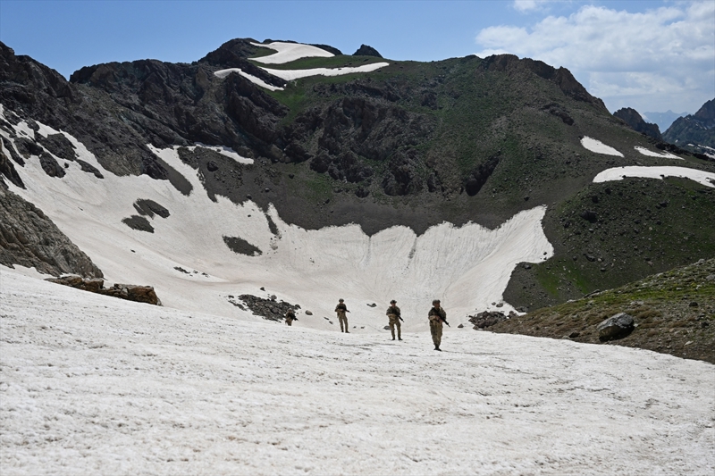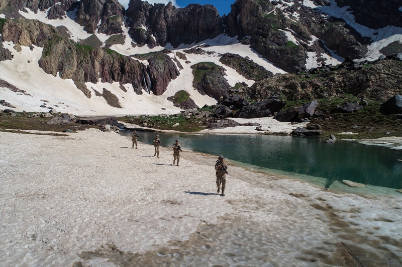 Yükseklik ve iklim nedeniyle metrelerce karın bulunduğu bölgede görevli jandarma komando ve güvenlik korucuları, terör faaliyetlerinin önlenmesi ve vatandaşların güvenliğinin sağlanması için gece gündüz nöbet tutuyor.
