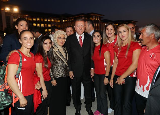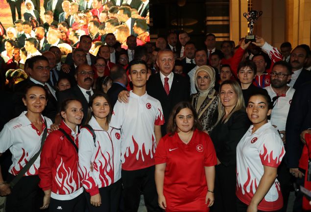 Cumhurbaşkanı Recep Tayyip Erdoğan, Cumhurbaşkanlığı Külliyesi'nde 30 Ağustos Zafer Bayramı dolayısıyla resepsiyon verdi.