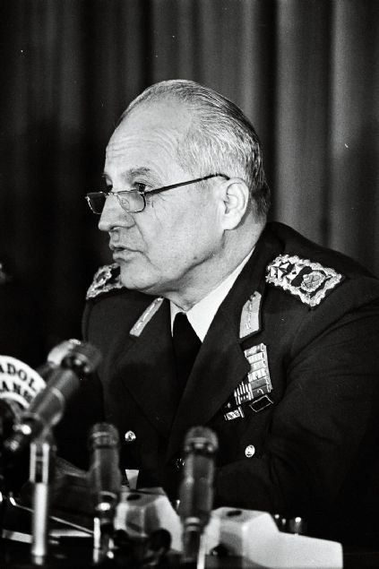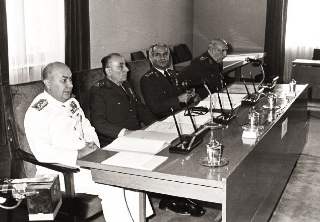 MGK üyeleri (soldan sağa) Deniz Kuvvetleri Komutanı Oramiral Nejat Tümer, Kara Kuvvetleri Komutanı Orgeneral Nurettin Ersin, Hava kuvvetleri Komutanı Orgeneral Tahsin Şahinkaya ve Jandarma Genel Komutanı Orgeneral Sedat Celasun