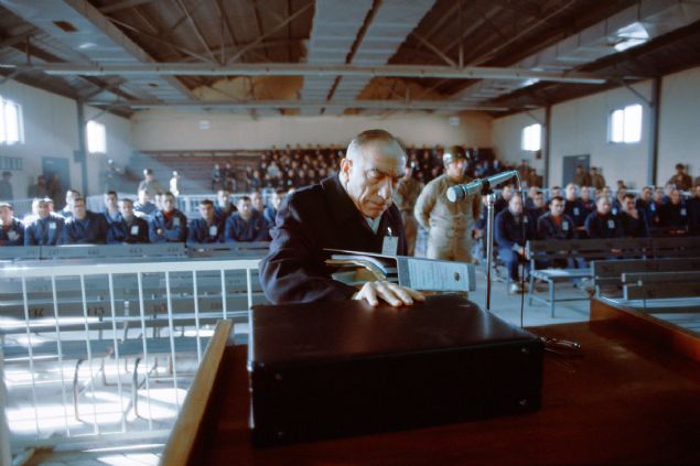 Yüksek Askeri Şura (YAŞ), Devlet Başkanı, MGK Başkanı ve Genelkurmay Başkanı Orgeneral Kenan Evren (solda) başkanlığında toplandı. MGK üyeleri Kara Kuvvetleri Komutanı Orgeneral Nurettin Ersin (sağda) Deviz Kuvvetleri Komutanı Oramiral Nejat Tümer (sağ 2), Hava Kuvvetleri Komutanı Orgeneral Tahsin Şahinkaya (sol 2) , Jandarma Genel Komutanı Orgeneral Sedat Celasun (sol 3) Milli Savunma Bakanı Ümit Haluk Bayülken