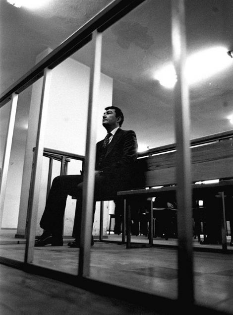 Milliyetçi Hareket Partisi (MHP) Genel Başkanı Alparslan Türkeş (ortada) Ankara Adliyesi'nde ifade verdi.