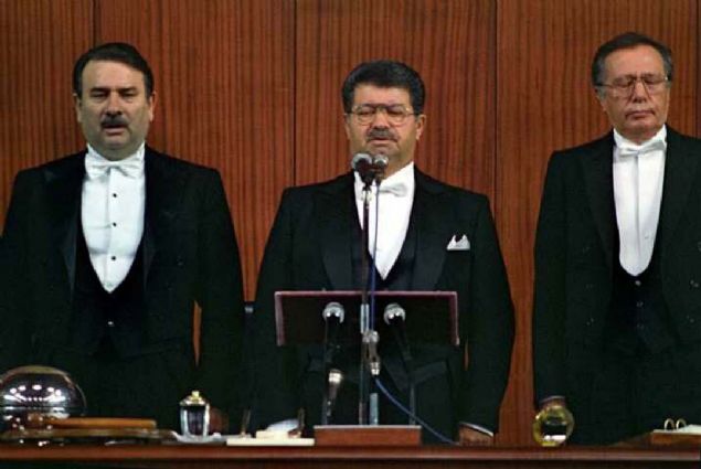 9 Kasım 1989'da Cumhurbaşkanı seçilen Özal (ortada), TBMM'de yemin etti