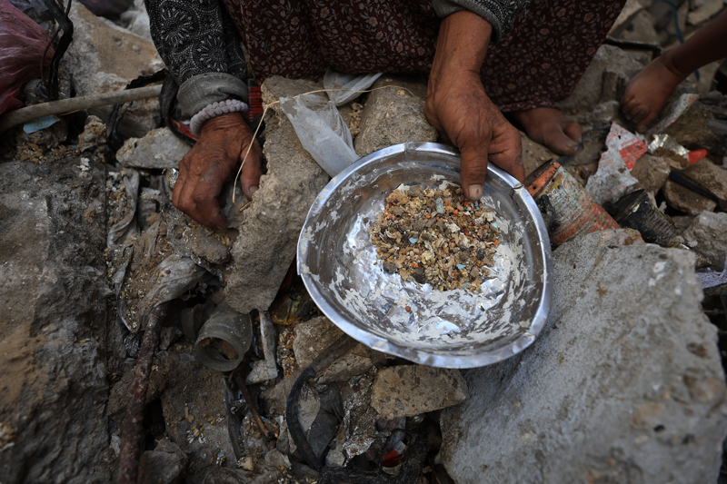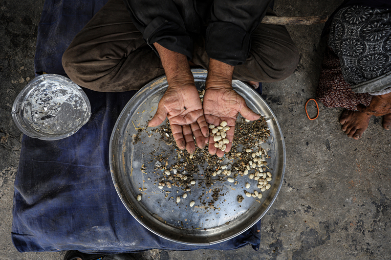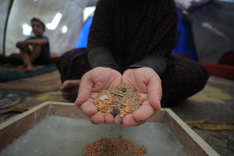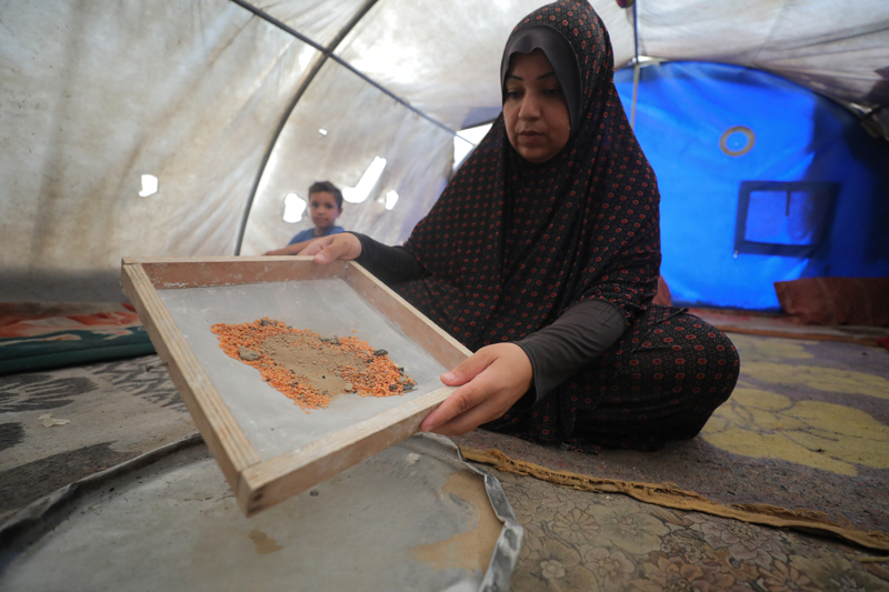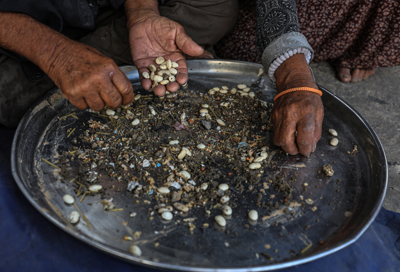 İsrail'in açlığa mahkum ettiği Gazzeliler, atık yemeklerle karınlarını doyurmaya çalışıyor. Nuseyrat Kampı'ndaki çadırlarda yaşayan aileler, gıda kıtlığının yaşandığı kentte topladıkları atık mercimeği süzgeçten geçirerek yemek yapıyor.