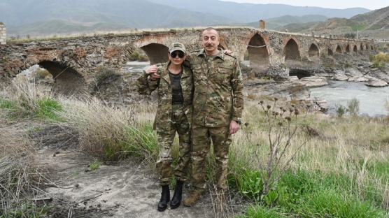 Aliyeva’nın sosyal medya hesabından paylaştığı görüntülerde konuşan Cumhurbaşkanı Aliyev, ”Hudaferin Köprüsü az ileride. Bunlarda vahşi düşman tarafından yıkılan Azerbaycan vatandaşlarının evleri. Araz Nehri Azerbaycan-İran sınırı. Dostluk sınırı” ifadelerini kullandı.