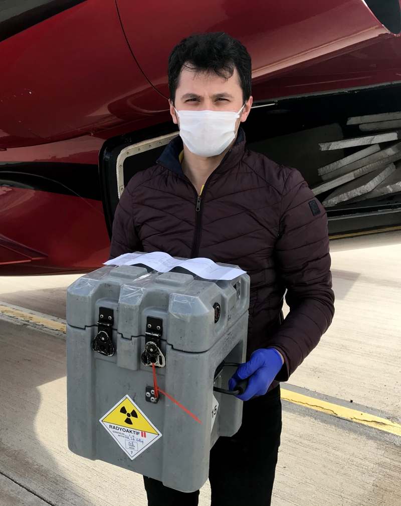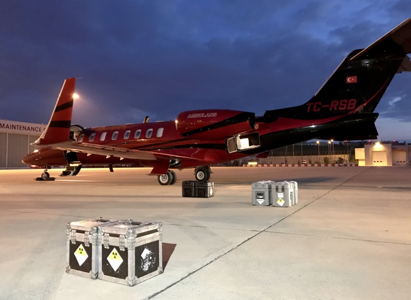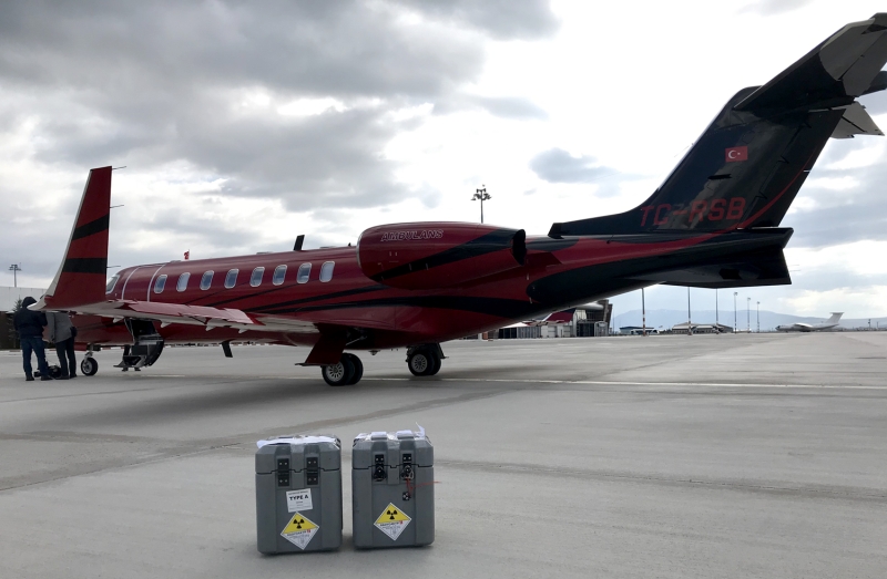 Kanser tetkiklerinde kullanılan radyoaktif ürün fluorodeoksiglukoz (FDG), yeni tip koronavirüs (Kovid-19) salgını sürecinde uçuşlara ara verilmesi nedeniyle ilk kez ambulans uçakla taşındı.