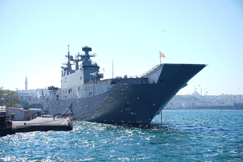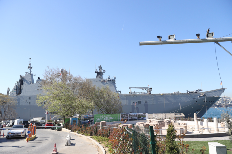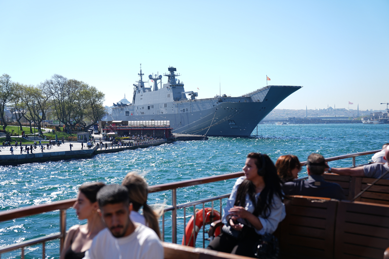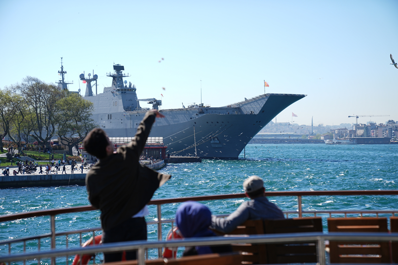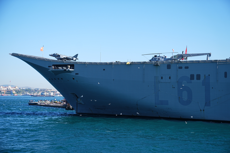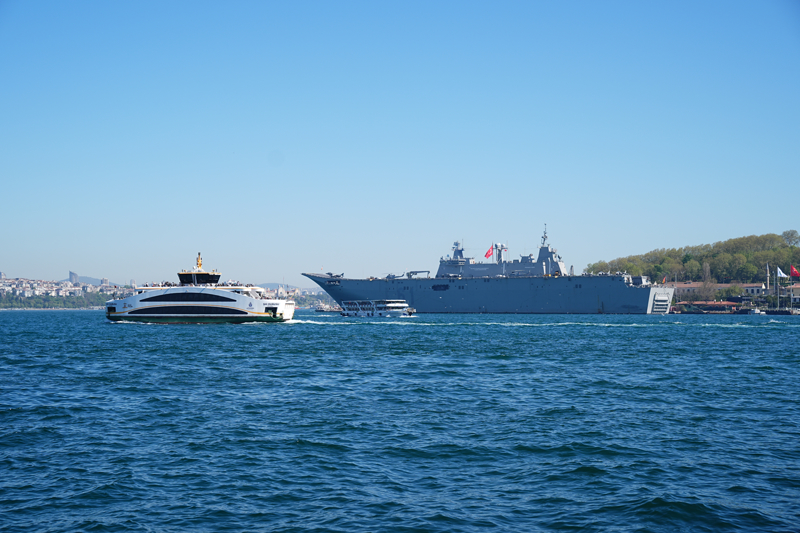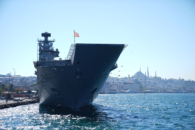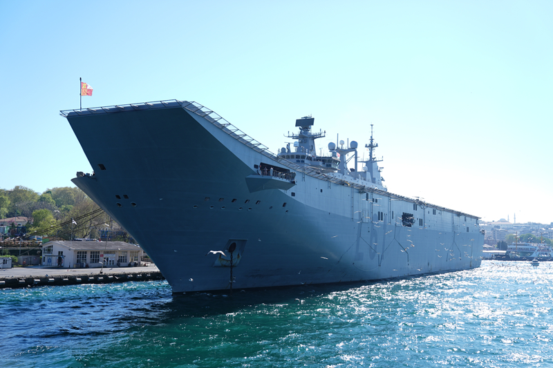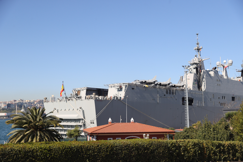 İspanya Donanması'nda görev yapan 231 metre uzunluğunda, 27 bin groston ağırlığındaki çok amaçlı amfibi hücum gemisi, dün Çanakkale Boğazı'na giriş yaptıktan sonra bugün İstanbul'a ulaştı.