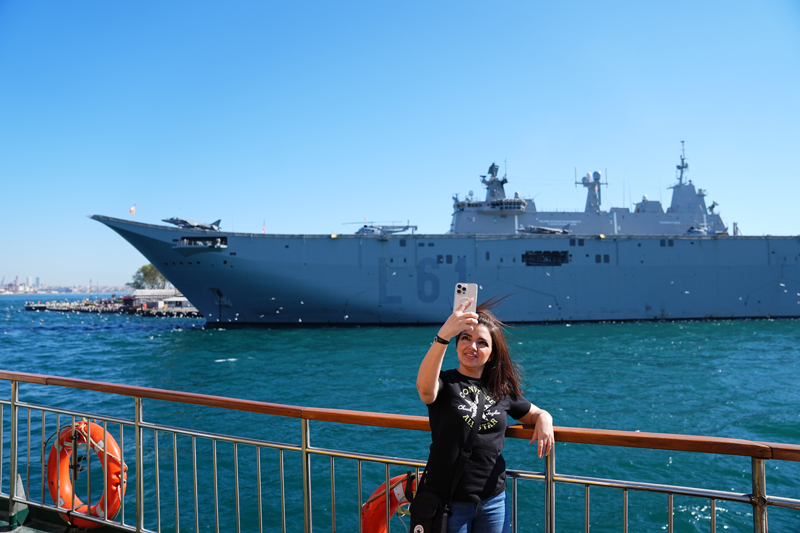 Türk Deniz Kuvvetlerinin TGC Anadolu gemisine benzetilen İspanyol gemisi, vatandaşlar tarafından da görüntülendi.