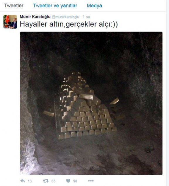 Konuyla ilgili Antalya Valisi Münir Karaloğlu da kişisel twitter hesabından paylaştığı fotoğrafla olayı açıkladı. Vali Karaloğlu, alçı külçelerin fotoğrafının üzerine, 'Hayaller altın, gerçekler alçı' mesajını tweetledi.